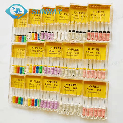 शुनवेई सबसे अच्छा विक्रेता दंत अंत मैनुअल स्टेनलेस स्टील k फ़ाइल विविध टेपर रूट कैनाल फ़ाइलें